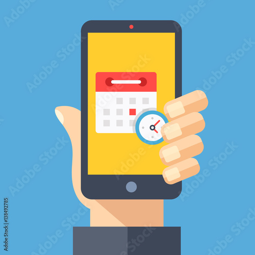 Calendar and clock on smartphone screen. Hand holding ... from as2.ftcdn.net Maybe you would like to learn more about one of these? Check spelling or type a new query. We did not find results for: